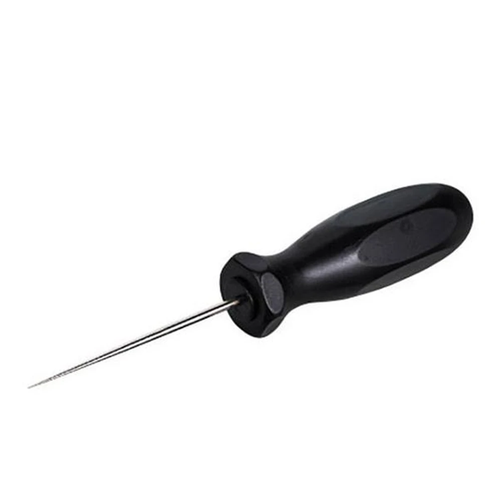 The straight awl is an essential tool for stringing tennis racquets. Without it, well, you’ll be taking your racquet somewhere else to string. It’s main purpose is to widen grommet holes for double string entry when encountering shared holes or tie offs. A secondary use is to prevent string burning, by fanning the cross strings when pulling them through the mains.