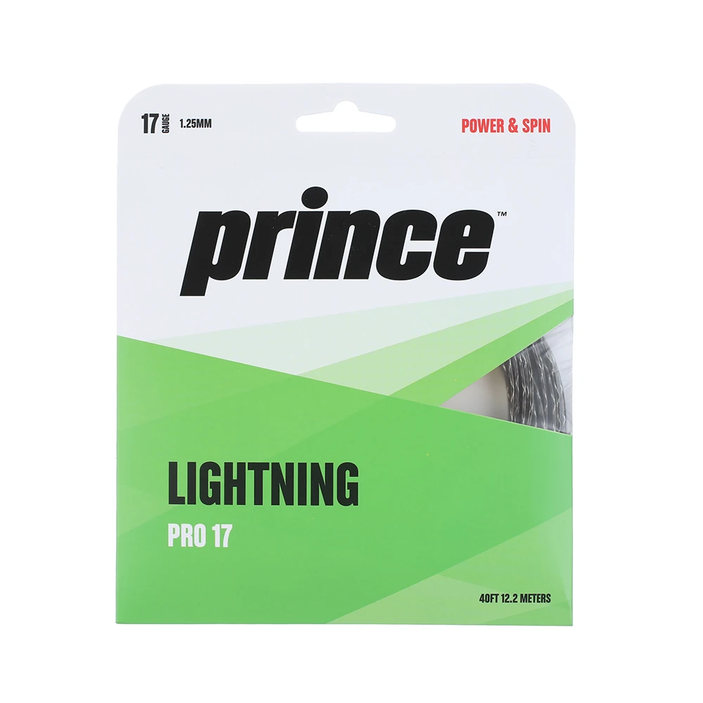 Introducing Prince Lightning Pro! This premium synthetic gut builds on the success of Lightning XX by adding a slightly more responsive central core. It also has a unique outer wrap that includes multifilament bundles for extra comfort. Like previous generations of Lightning, this string has Powerfoil Technology, which consists of thin PET (polyester) ribbons. Our playtest team found Lightning Pro to be more powerful than Prince Synthetic Gut, making it a great option for the player who wants a value string with some extra pop. Did we mention the high comfort level?